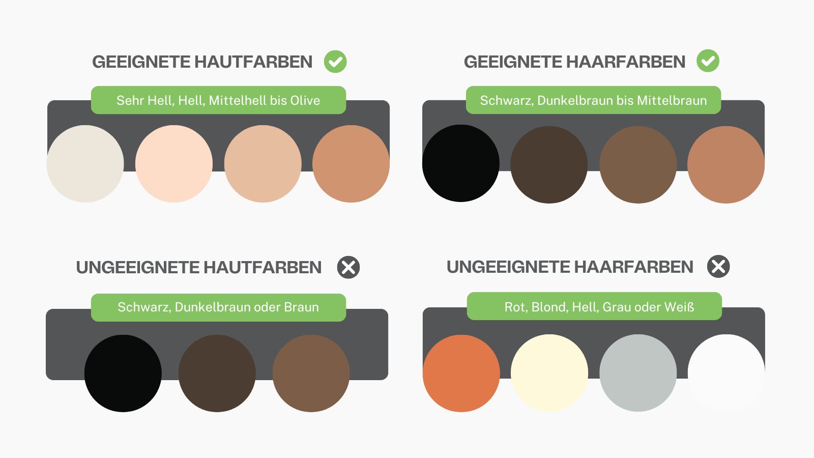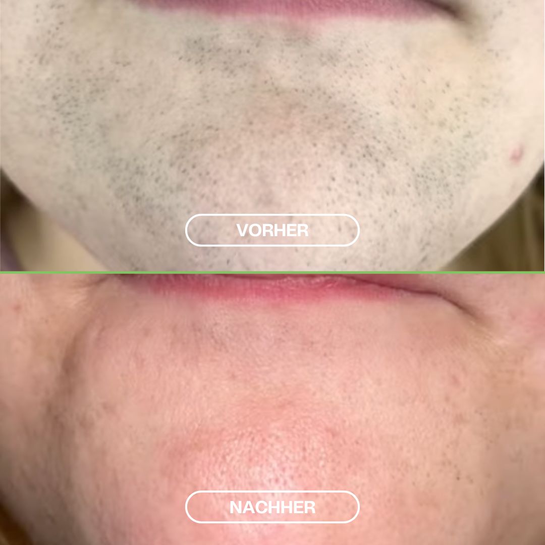 - Bartlinie und Gesichtshaare (Hals-/Schilddrüsenbereich meiden)