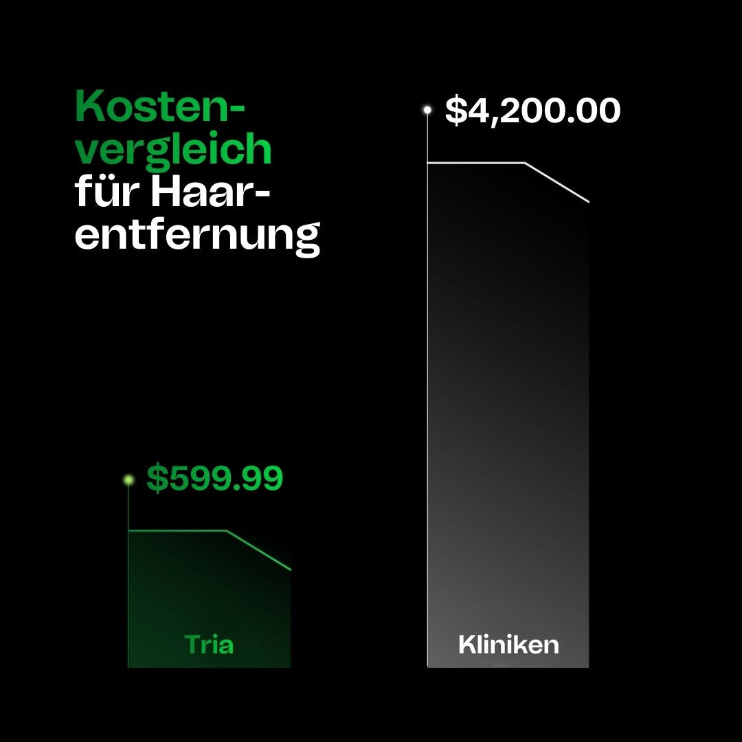 Mit einer einmaligen Investition von nur 499,99$ – das entspricht einer Ersparnis von 700 bis 6.700$ – ist unser Tria 4X Laser zur Haarentfernung eine kosteneffiziente Alternative zu professionellen Behandlungen.