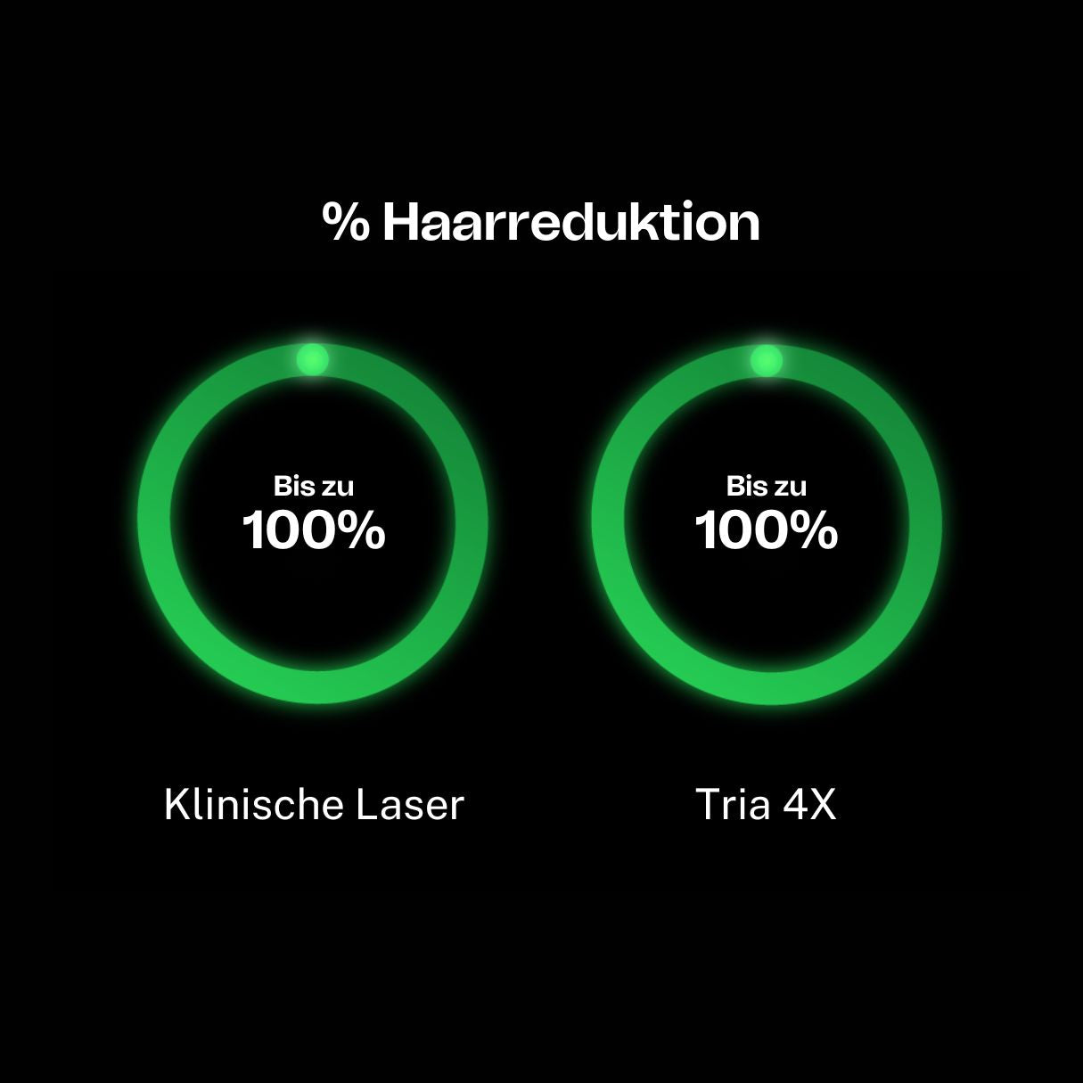 Klinische Studien belegen, dass der Tria 4X Laser zur Haarentfernung bis zu 100% Haarentfernung und bis zu 75% Haarreduzierung bereits nach nur 2 Anwendungen erzielen kann.